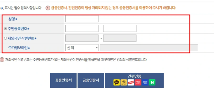 인증서가 준비되지 않은 상태에서는 발급 절차를 진행할 수 없으므로 사전에 인증서 꼭 준비하시길 바랍니다.