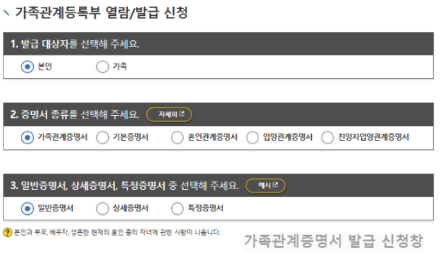 가족관계증명서 발급 신청 시 주의사항