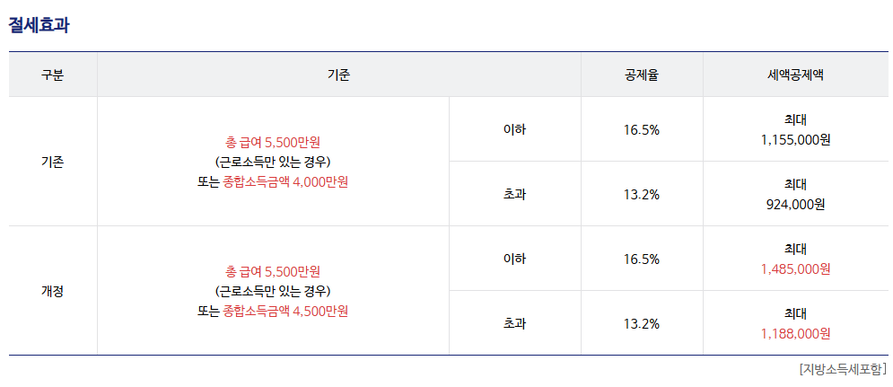- 총급여 5,500만 원 이하: 세액공제율 16.5%