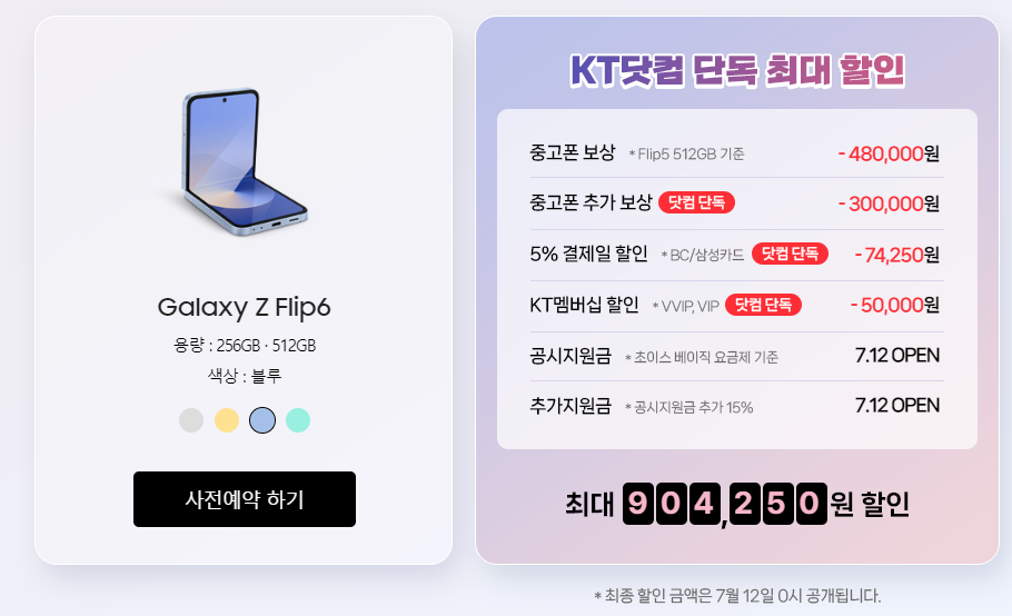 ✅갤럭시 z 플립6 사전예약 기간 : 7월 12일 ~ 7월 18일