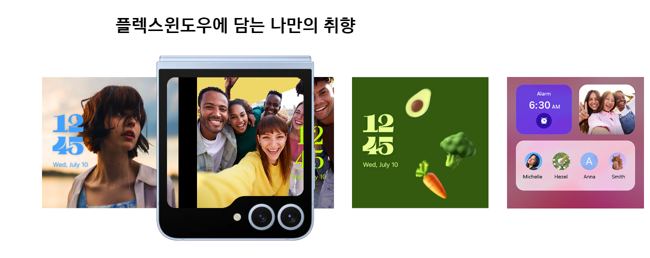 갤럭시 Z플립6는 256GB와 512GB의 저장 용량 옵션을 제공합니다. 더 많은 파일과 앱을 저장할 수 있는 대용량 저장 공간을 제공하여 사용자들의 다양한 요구를 충족시킵니다.