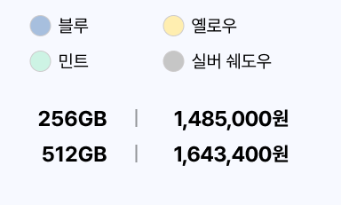 • 기본 색상: 민트, 블루, 옐로우, 실버