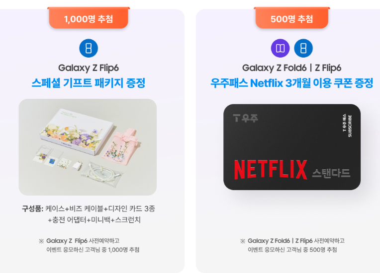 '우주패스 넷플릭스 스탠다드' 3개월 무료 이용 쿠폰, '플립6 스페셜 기프트 패키지' 제공.