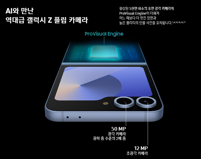 • 프로세서: 갤럭시 Z플립6는 최신 스냅드래곤8 3세대 AP를 사용하여 더 빠르고 효율적입니다.