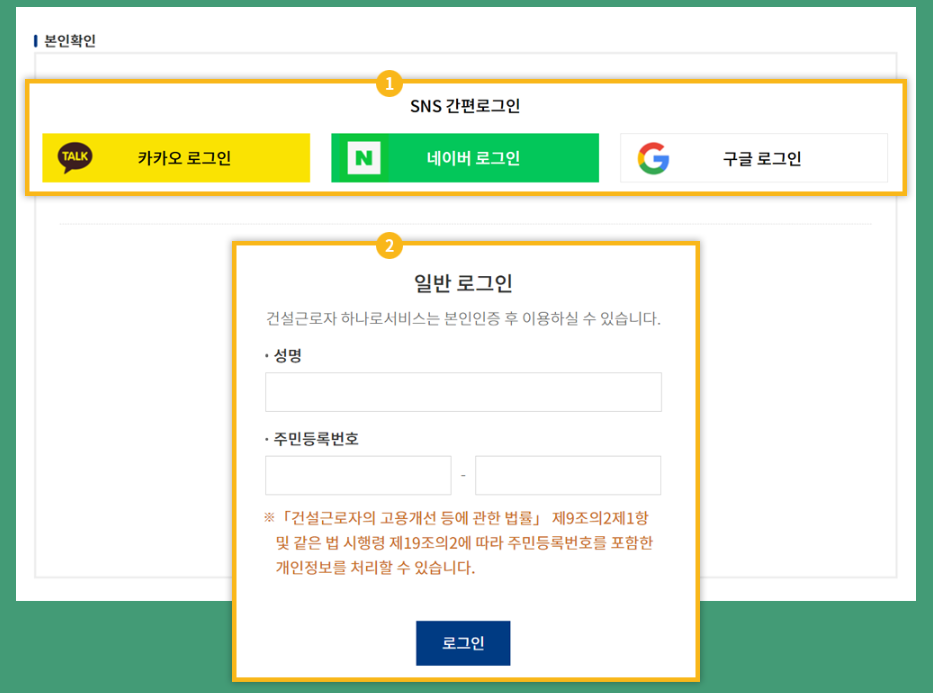 - 건설근로자 하나로 서비스 접속