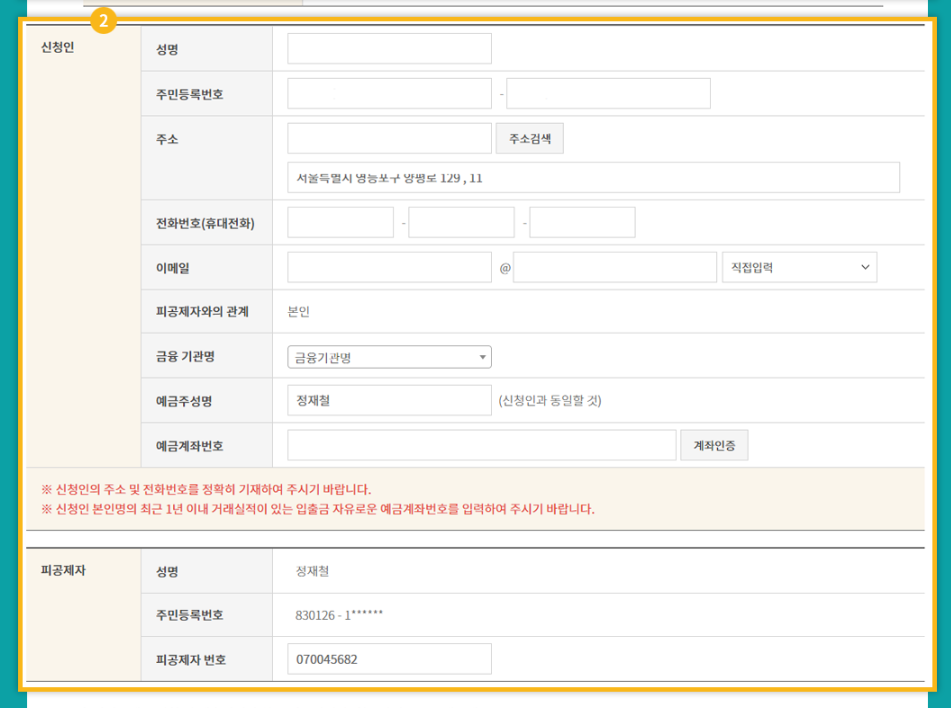 • 신청서 작성 및 필요 서류 첨부