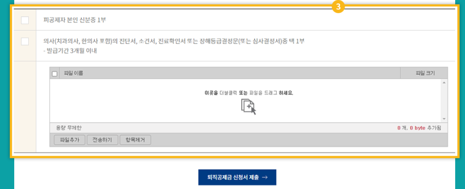 • 본인 명의 통장 사본: 퇴직공제금이 입금될 계좌