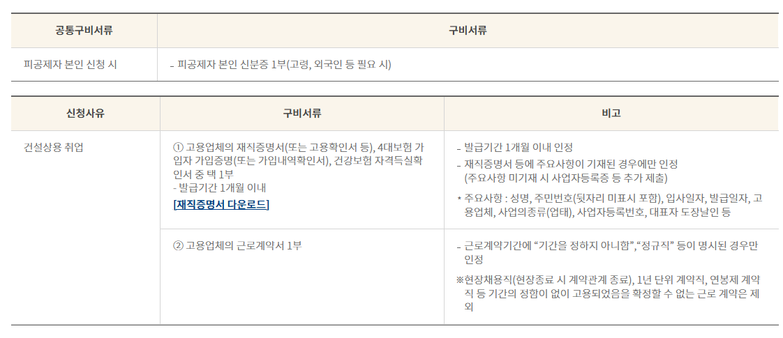 • 건설근로자공제회 홈페이지에서 신청서 양식 다운로드