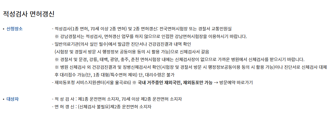 - 검사 시기: 면허 만료 6개월 전부터 가능