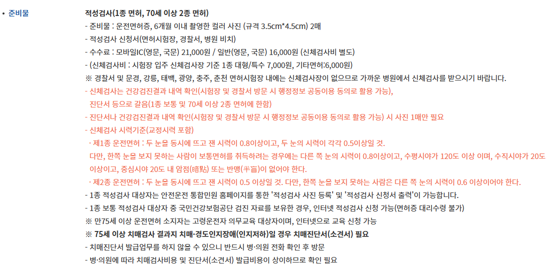 - 필수 지참물: 신분증, 운전면허증, 안경(필요시)