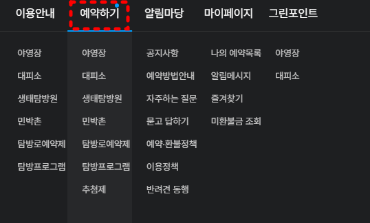 국립공원에 위치한 야영장이나 대피소, 생태탐방원 등을 이용하기 위해서는 예약이 필수이니다. 국립공원 예약통합시스템을 이용하면 정해진 일정에 따라서 예약을 잡을 수 있습니다.