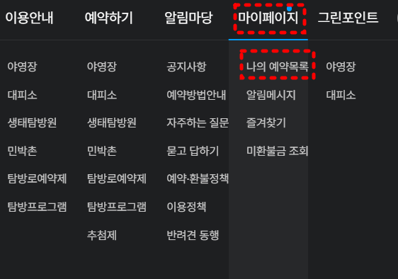 국립공원 예약통합시스템 예약확인 및 취소방법