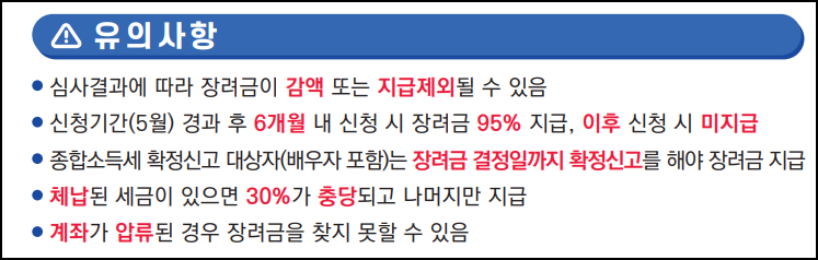 근로장려금 신청 후 심사시 신청요건 등을 충족하지 못하는 경우에는 지급제외가 될 수도 있습니다. 또한, 지급금액은 총급여액에 따라서 최대지급액에서 감액될 수 있습니다.