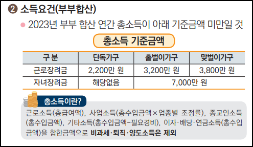 - 홑벌이가구 : 연간 부부 합산 총소득 3200만 원 미만