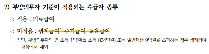 2. 부양의무자 기준 폐지되었으나, 의무자의 재산이 연소득 1억 미만, 재산 9억 원 미만인 자.