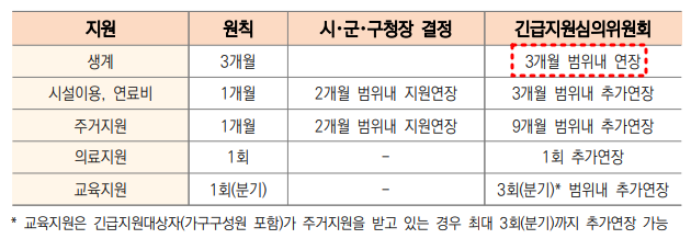 긴급복지 생계지원금 연장