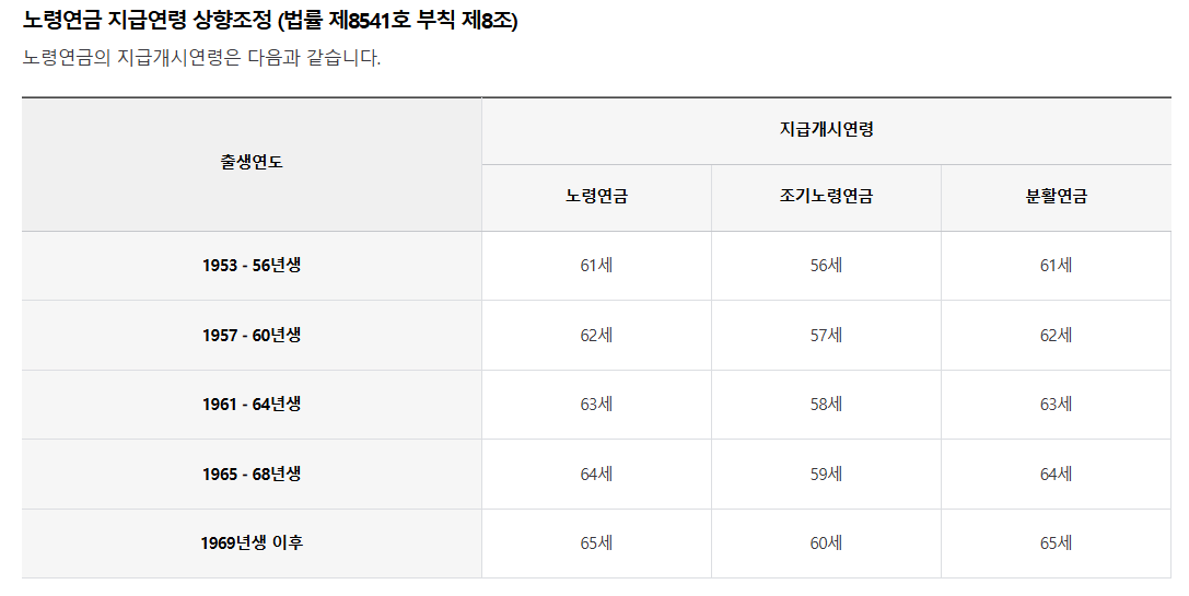 또한, 노령연금 수령나이는 현재 법적으로 61세 이상부터 가능합니다. 그러나 2033년까지 수령 시작 연령이 점차 65세로 상향될 예정입니다.