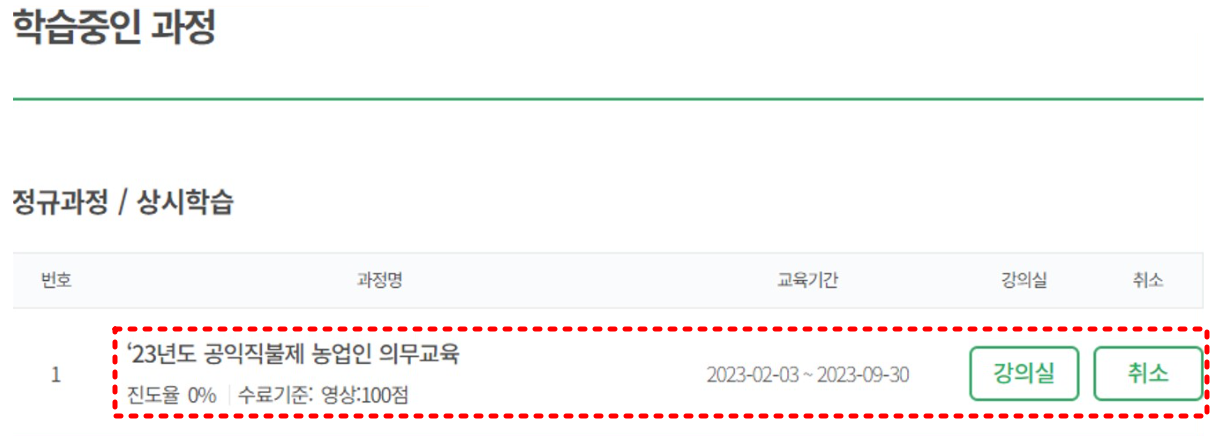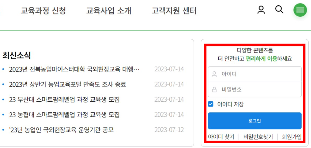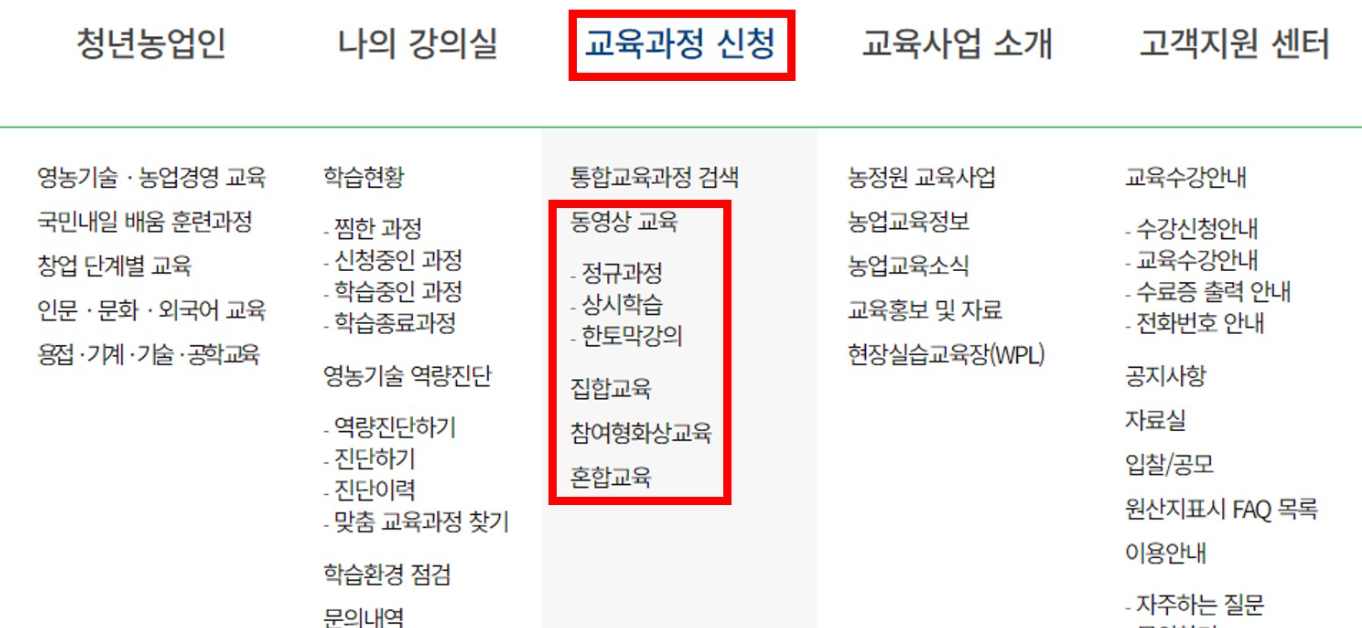 농업 교육포털 수강 신청 방법