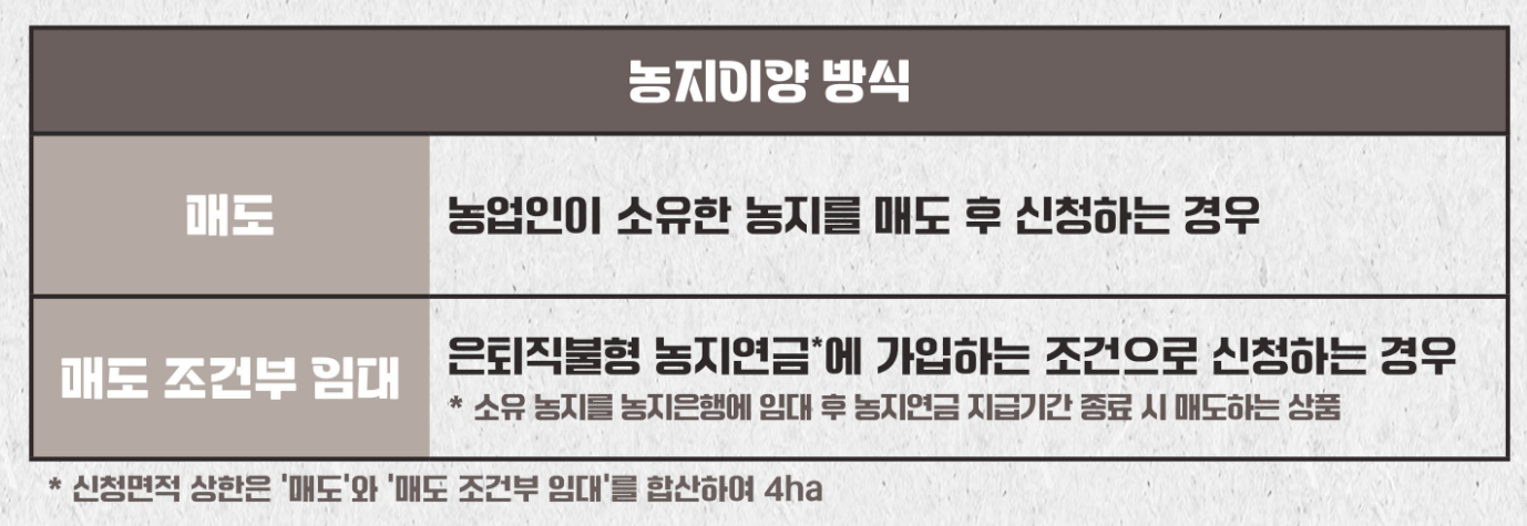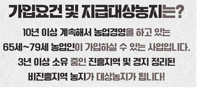 연령 이외에도 아래의 이양대상 농지의 요건을 충족해야합니다.