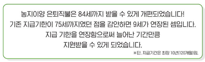 이를 통해 더 많은 고령 농업인이 혜택을 받을 수 있게 되었고, 은퇴 이후 소득 보장 기간이 늘어났습니다.