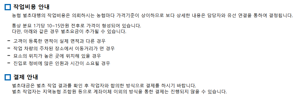 - 농협 벌초대행 가격 확인과 함께 작업 범위 명확히 하기