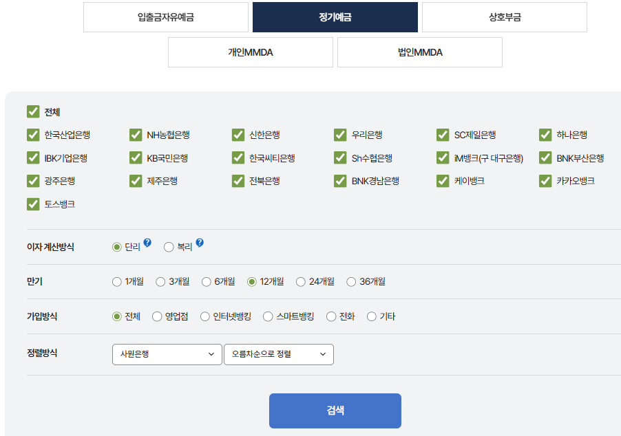 1금융권 위주의 농협 정기예금 금리비교를 원한다면 은행연합회 홈페이지가 유용해요. 시중은행들의 정기예금 금리만 깔끔하게 정리되어 있어서, 농협과 다른 시중은행들의 금리를 직접적으로 비교하기 좋습니다.