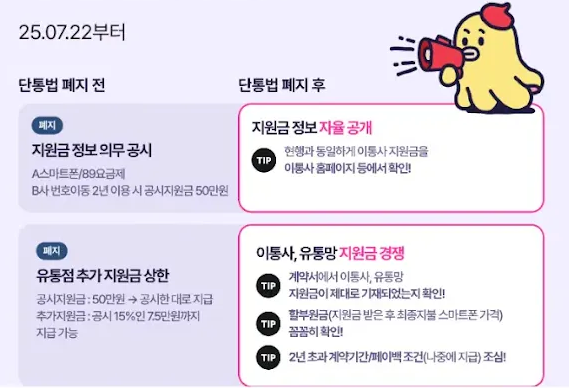 그래서 드디어 2025년 7월 22일부터 이 법이 완전히 사라지게 됐어요! 이제 단통법 폐지 휴대폰 가격 구조가 완전히 바뀌면서 우리에게 더 많은 혜택이 돌아올 것 같아요.