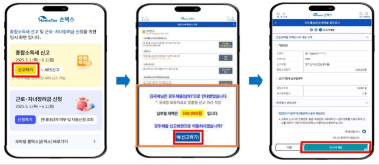 - 모두채움신고: 국세청이 미리 작성한 신고서를 검토하고 필요시 수정