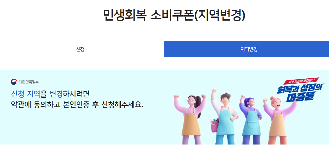 이 두 가지 조건이 모두 충족되어야만 민생지원금 사용지역 변경 신청이 가능합니다.