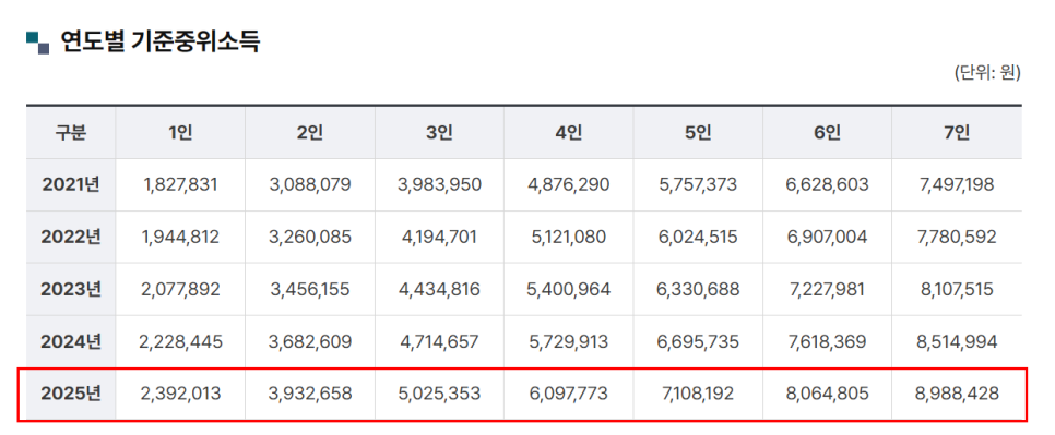 2025년 기준 3인가구의 중위소득 100%는 502만원으로, 가구 구성원의 소득을 모두 합쳤을 때 월 세전 502만원이면 딱 대한민국 중간에 해당합니다. 여기서 상위 10%만 제외하고 나머지는 일반국민으로 분류될 것으로 예상됩니다.