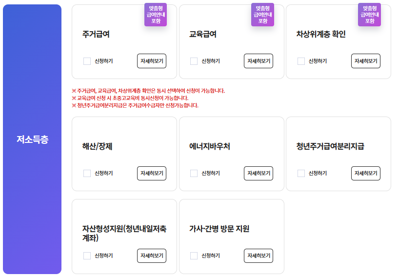 예를 들어, 생계비 지원 신청을 하고자 할 경우 필요한 서류와 준비 과정이 상세히 안내되어 있어 필요한 사항을 하나씩 확인하며 신청할 수 있습니다.