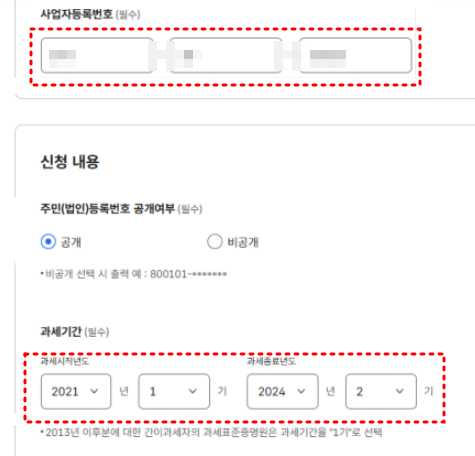 - 과세기간은 최대 5년까지 선택 가능하며, 필요한 기간을 정확히 설정하세요.