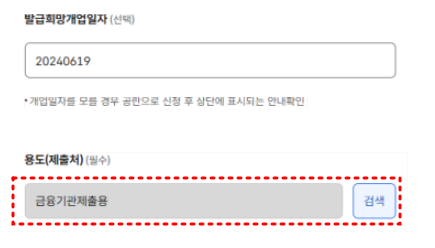 - 발급 정보: 용도, 제출처, 과세기간 등 필요한 정보를 입력합니다.
