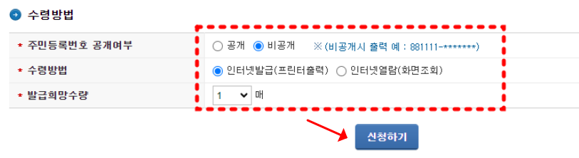 - 인터넷발급(프린터 출력): 즉시 출력 가능한 형태로 발급