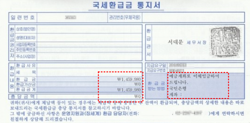 부가세 환급금은 사업자가 신고할 때 지정한 환급 계좌로 지급됩니다.
