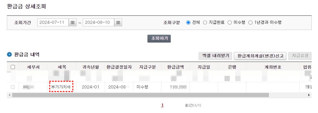 부가세 환급금 조회 방법