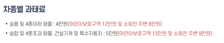 일반적인 승용차의 경우 40,000원, 승합차는 50,000원의 과태료가 부과되며, 특정 지역에서는 최대 90,000원까지 부과될 수 있습니다.