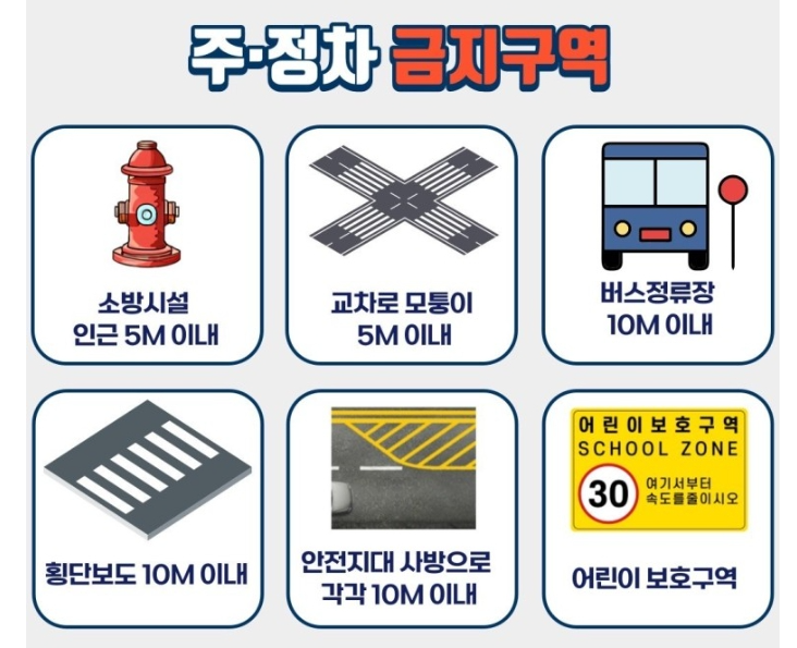 주정차 위반 단속 구간은 교통법규를 위반한 주정차 차량에 대한 집중 단속이 이루어지는 구역을 말합니다. 이러한 구간은 주로 교차로, 횡단보도, 버스정류장, 그리고 소방차 전용구역 등으로, 교통 흐름과 안전을 저해할 수 있는 장소들입니다.