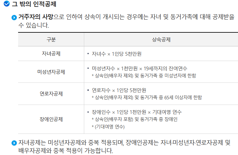 인적공제는 상속세 면제한도액을 최대한 활용할 수 있는 중요한 수단으로, 가족 구성원에 따라 공제 혜택이 달라지므로 꼼꼼히 살펴볼 필요가 있습니다.