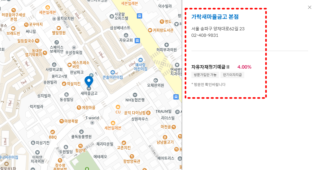 더 자세한 정보를 알고싶다면, 해당 금고 명을 선택하여 해당 상품의 상세 정보와 가입 방법을 확인할 수 있어 매우 간편합니다.