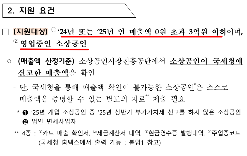 - Q: 개인사업자와 법인 모두 신청 가능한가요? A: 네, 매출 조건만 맞으면 모두 가능합니다
