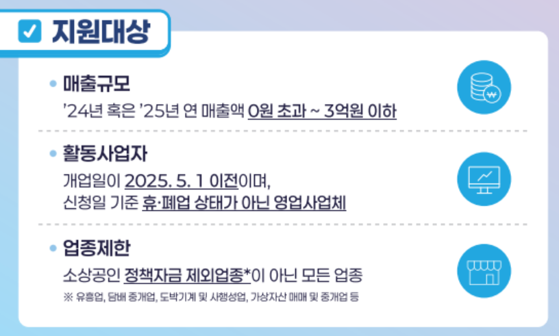쉽게 말해서, 작년이나 올해 상반기에 매출이 있었고, 현재 정상적으로 사업을 하고 있으면 대부분 해당됩니다. 다만 일부 업종은 지원에서 제외됩니다.