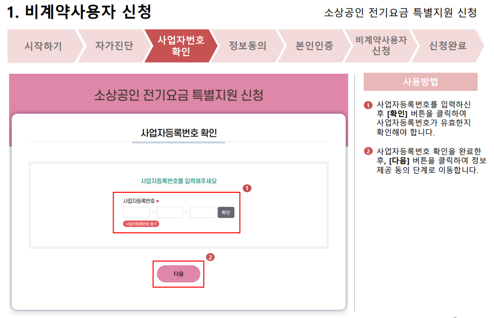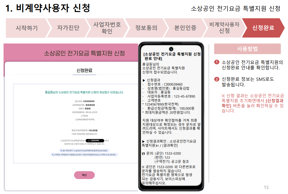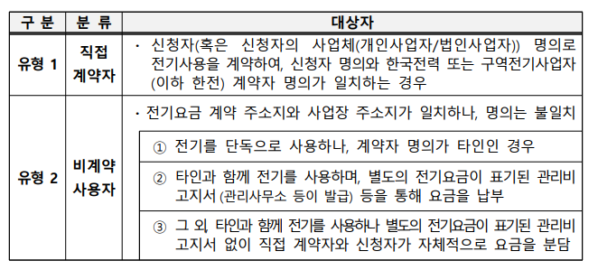 ✅ 대상자: 전기요금 계약자가 소상공인 사업체(개인사업자 또는 법인사업자)와 일치하는 경우.