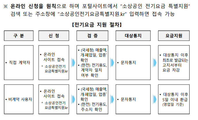 소상공인 전기요금 특별지원 신청 방법 (기간, 대상)