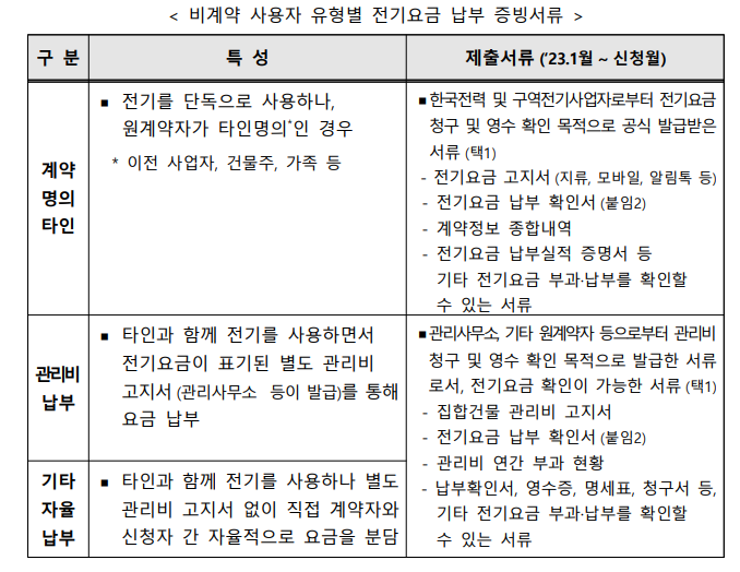 ✅ 대상자: 전기요금 계약자가 신청자와 다르거나, 다수의 사용자가 공동으로 전기를 사용하는 경우.