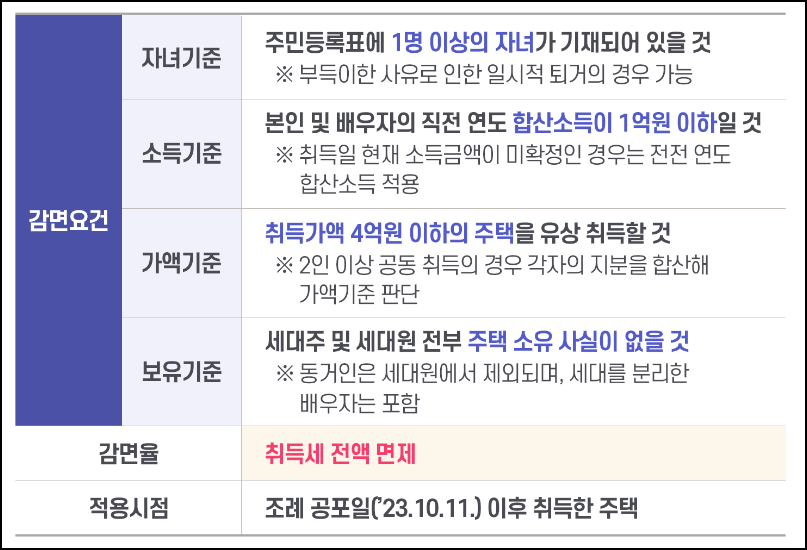 2. 경기도 유자녀 세대 생애최초 취득세 면제