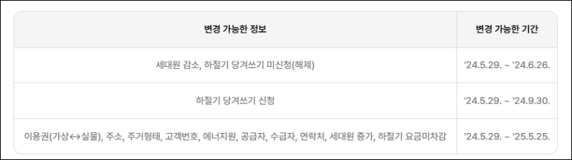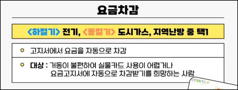 - 동절기: 도시가스, 전기, 지역난방 중 한 가지를 선택하여 차감 신청