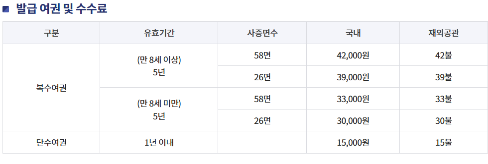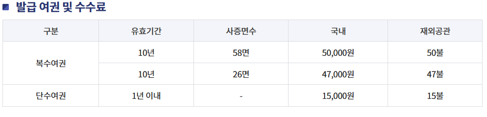 - 일반 여권 (26면) 10년: 42,000원
