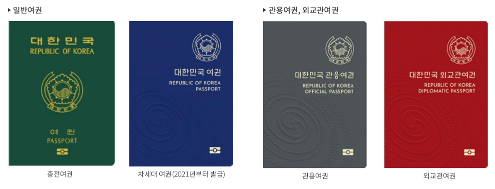 | 여권 종류 | 유효기간 | 사증 면수 | 수수료 |