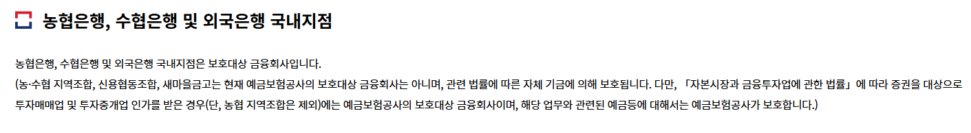 예금자보호법에 해당되지 않는 은행